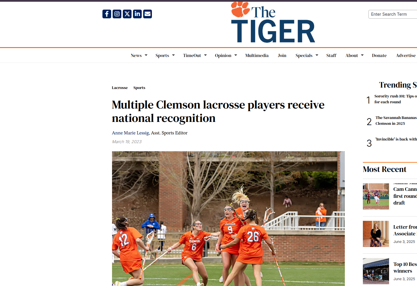 Multiple Clemson lacrosse players receive national recognition